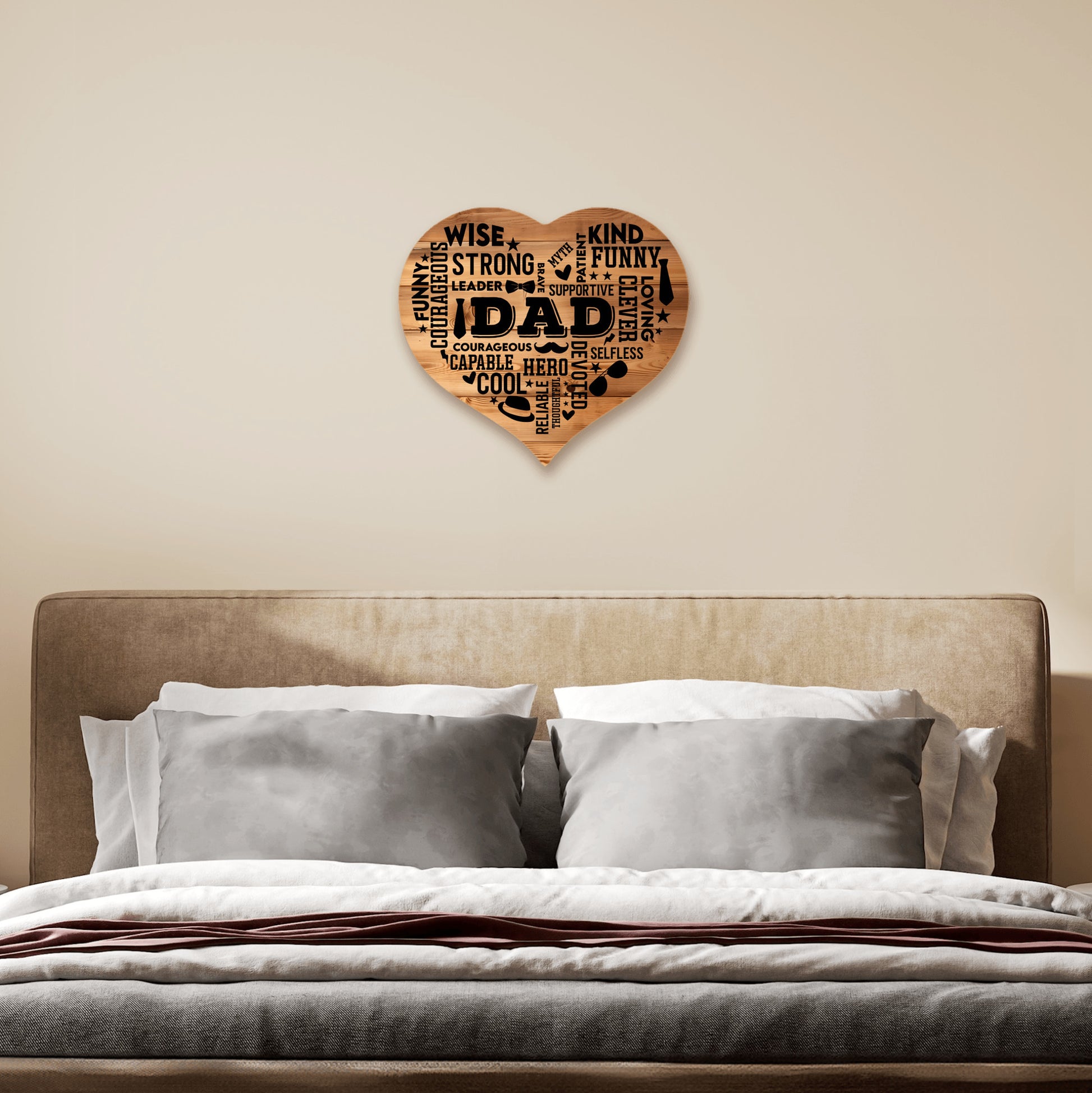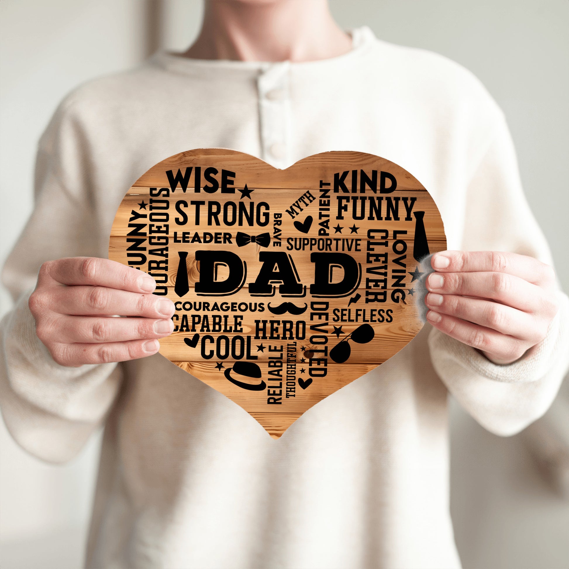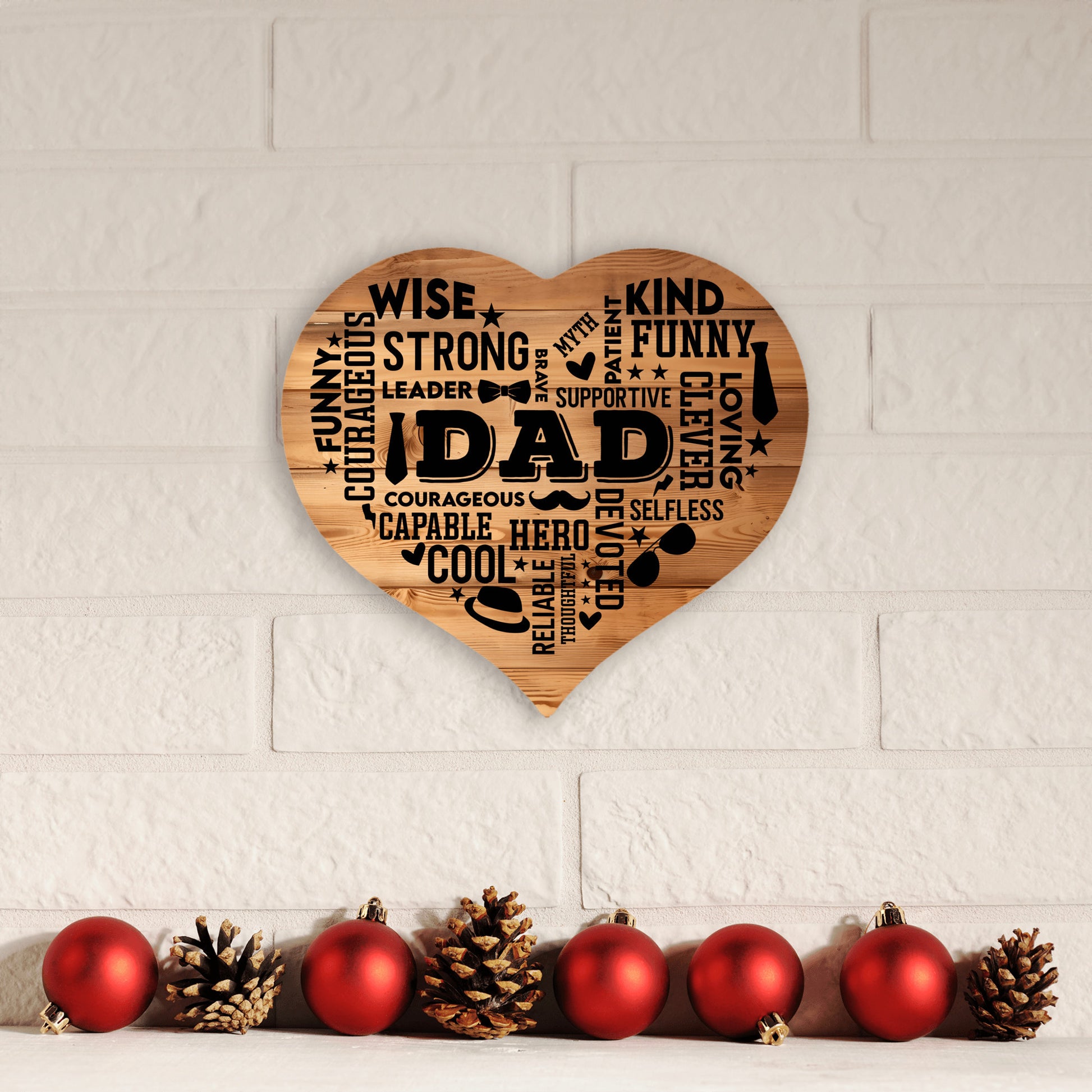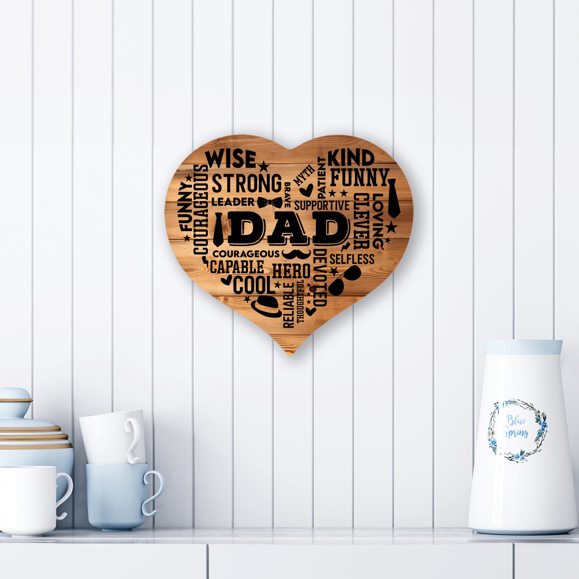 Heart Shaped DAD Word Art MDF Sign, Wood background