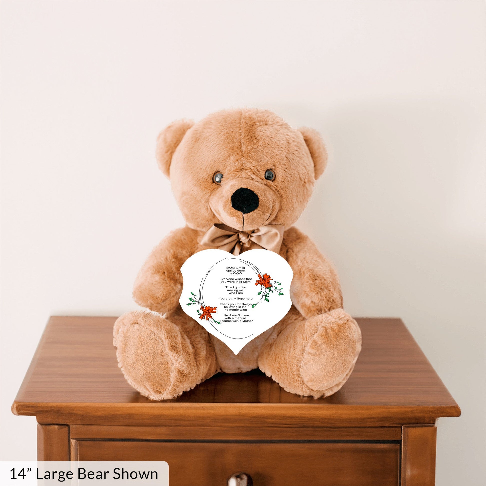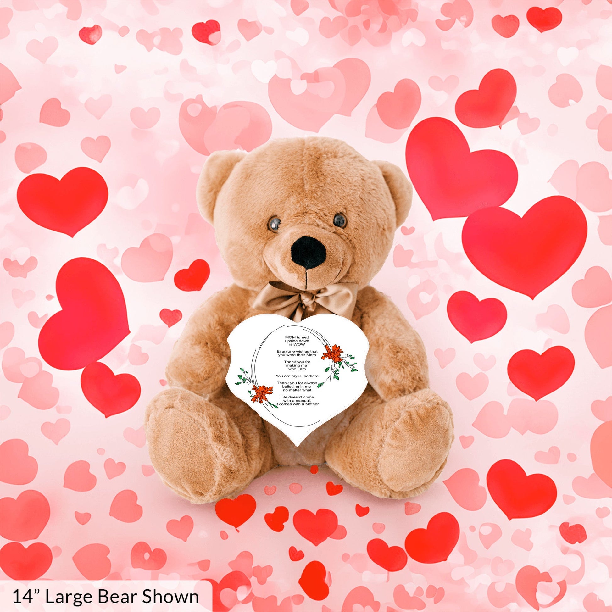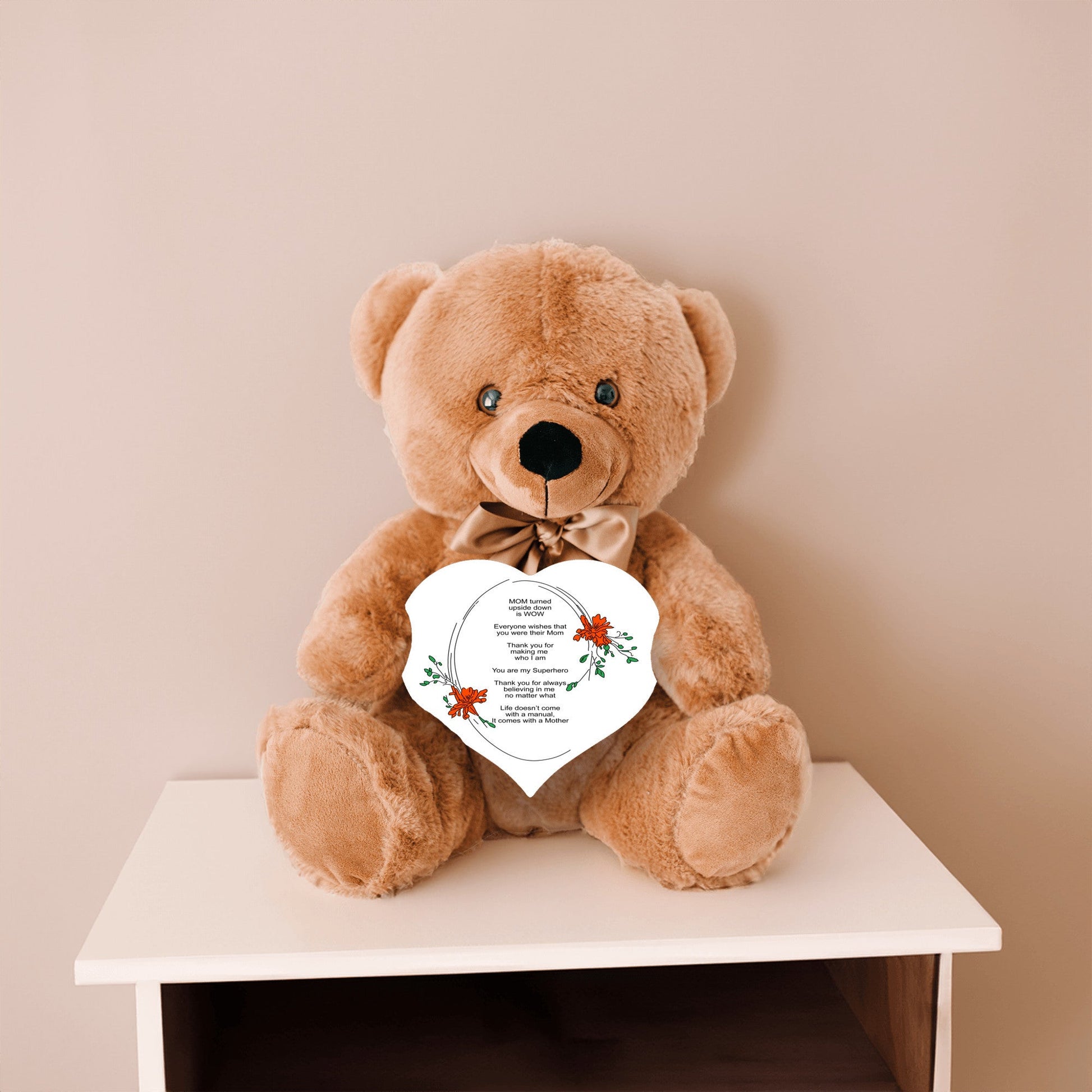MOM turned Upside Down Is WOW - Teddy Bear With Heart Shaped Sign