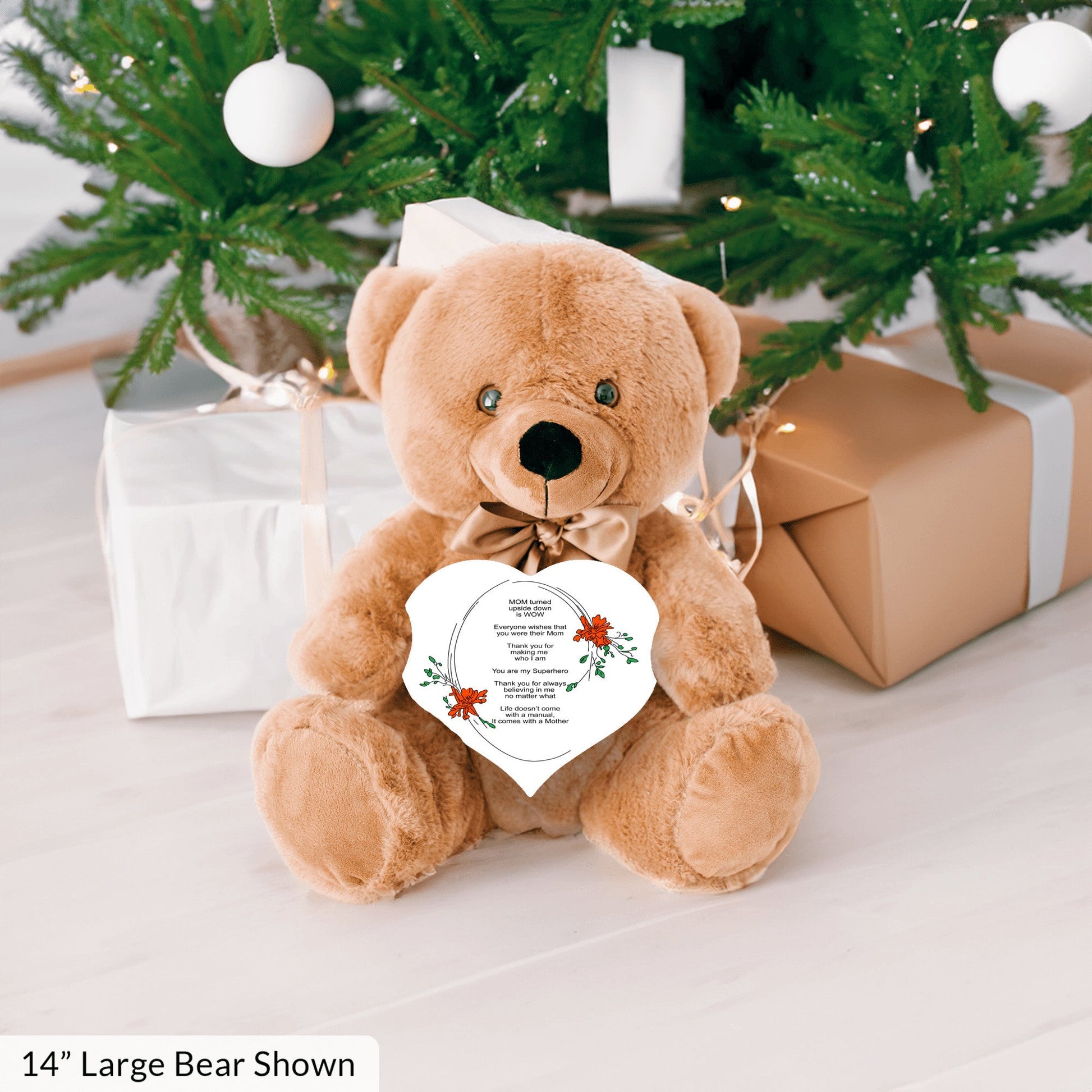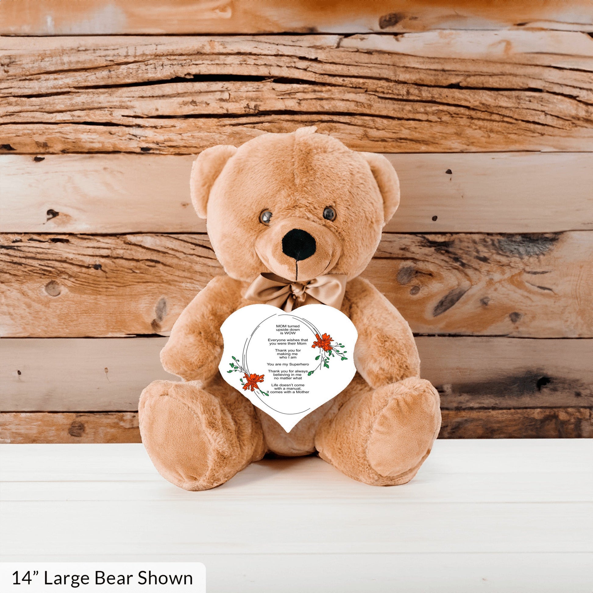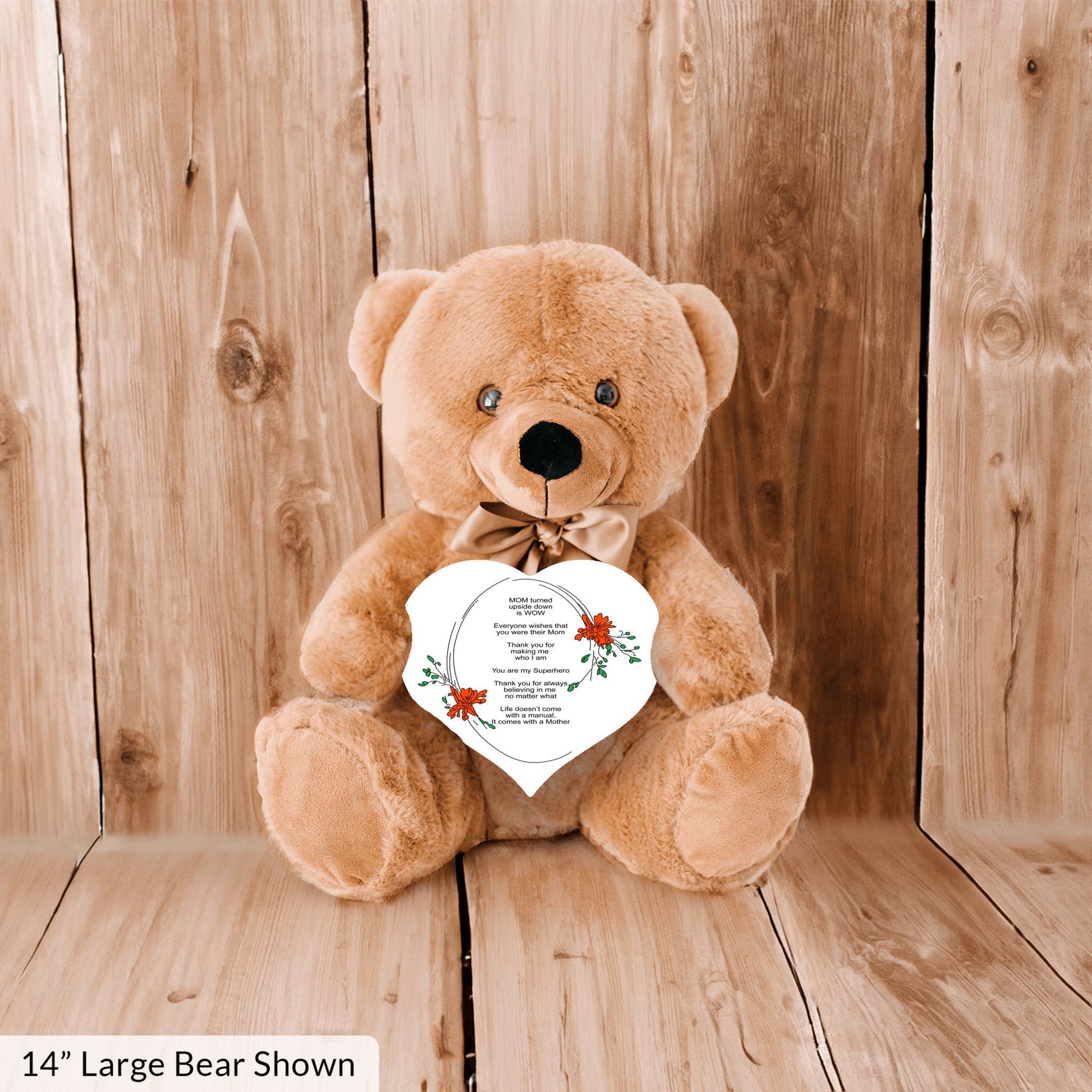 MOM turned Upside Down Is WOW - Teddy Bear With Heart Shaped Sign
